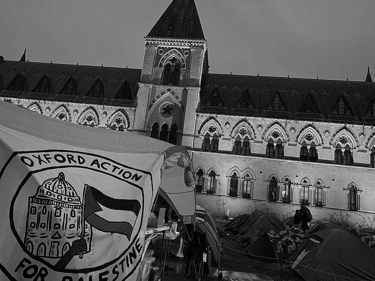 *Image credits: Kiri of Karitane, 2024, Night photograph of the 2024 Oxford Palestine solidarity encampment 08. [Online]; San Francisco: Wikimedia Foundation.